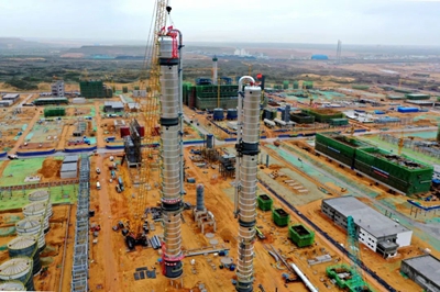 乙醇精制塔順利封頂,為項目建設吹響了進入安裝高峰期的號角,項目組將借助“百天攻堅大會戰”的氛圍,集團隊之智慧,通過各參建單位的共同努力,高標準完成2021年年度目標,確保項目按期中交。(通訊員/黃耀輝 攝/高學峰)