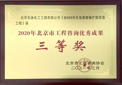 近日,從北京市工程咨詢協會傳來喜訊,由公司申報的《陜西延長石油榆神能源化工有限責任公司50萬噸/年煤基乙醇項目》和《延969井區地面集輸擴能改造工程》分別獲得2020年北京市工程咨詢優秀成果一等獎和三等獎。