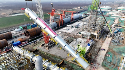 全球最大規(guī)模安徽碳鑫60萬噸/年煤基乙醇項(xiàng)目超百噸大塔順利吊裝