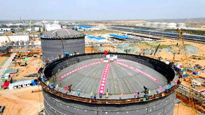 7月14日,由北京石油化工工程有限公司EPC總承包的延長石油靖邊天然氣儲氣調(diào)峰及配套LNG項目兩臺5萬立方米大型液化天然氣儲罐穹頂氣頂升作業(yè)圓滿完成,標(biāo)志著外罐主體結(jié)構(gòu)建設(shè)完畢,全面轉(zhuǎn)入內(nèi)罐安裝階段,為項目后續(xù)建成中交奠定了堅實基礎(chǔ)。