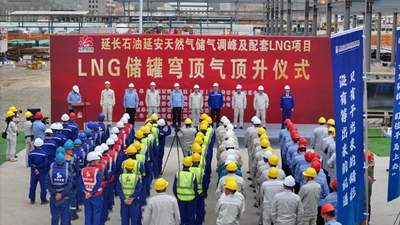 5月7日,由北京石油化工工程有限公司(簡稱“北油工程”)總承包的延長石油延安天然氣儲氣調(diào)峰及配套LNG項目取得重大進展——兩座5萬立方米液化天然氣(LNG)儲罐順利完成“雙罐同步穹頂氣頂升”關(guān)鍵工序。標(biāo)志著項目主體結(jié)構(gòu)建設(shè)全面完成,正式轉(zhuǎn)入內(nèi)罐安裝階段,為項目后續(xù)投產(chǎn)運營奠定了堅實基礎(chǔ)。