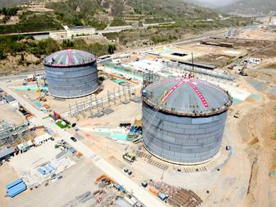 據(jù)悉,作為LNG儲罐建設(shè)過程中最具挑戰(zhàn)性的環(huán)節(jié),“氣壓升頂”工藝難度高、風(fēng)險高。本次實施氣頂升的1號、2號儲罐采用先進的雙金屬全容結(jié)構(gòu),外罐內(nèi)直徑達52米,拱頂跨度51.8米。在歷時2小時18分鐘的精密操作中,成功將單體重達457.37噸的儲罐穹頂平穩(wěn)提升29.57米,最終實現(xiàn)與承壓環(huán)的精準(zhǔn)對接,為后續(xù)3號、4號儲罐穹頂升打下堅實基礎(chǔ)。